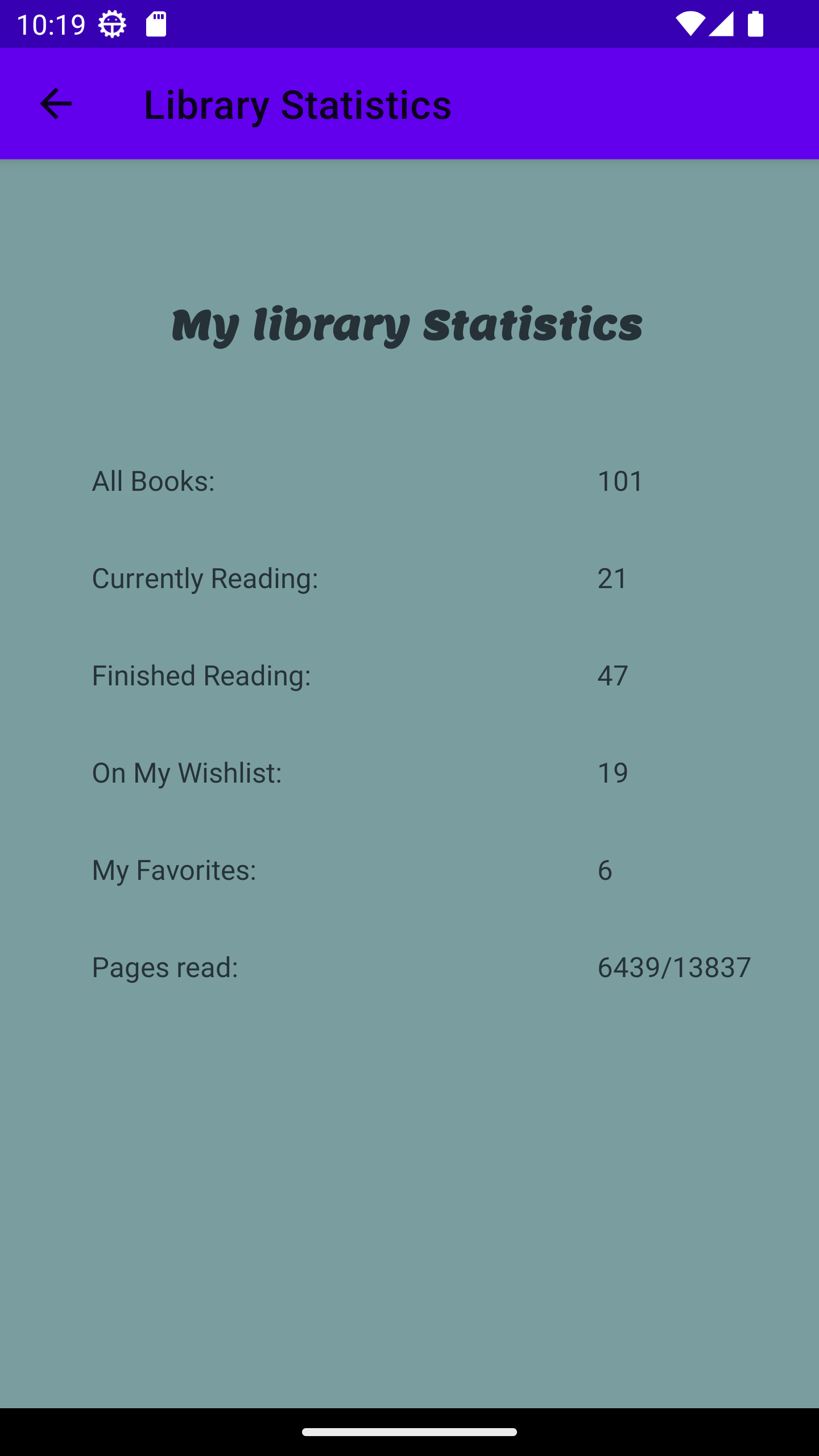 🟊 Easily track the number of books you Have Read, Currently reading, on your Wishlist, Favorite books and how many pages have been read out of all books in My library.